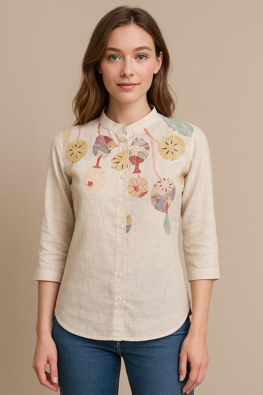 Crafted from pure linen, the Celestial Lights shirt combines breathable comfort with a refined print design, offering a stylish yet effortless look. Its natural texture complements denim perfectly, making it an ideal choice for both casual outings and polished daywear. This shirt balances durability with aesthetic appeal for a timeless addition to your wardrobe.