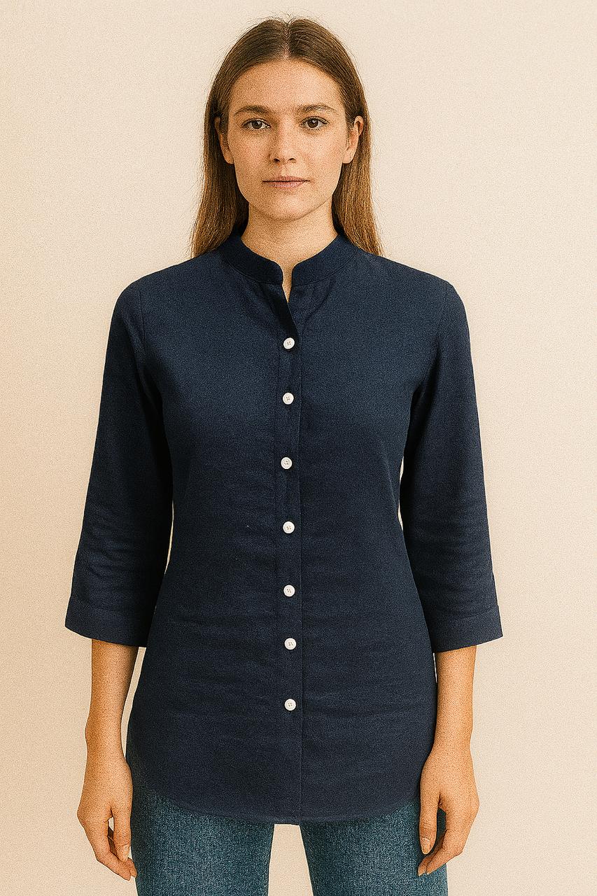 Crafted from breathable linen, the Eterna Blue shirt offers women a perfect blend of comfort and style. Its lightweight fabric keeps you cool during warm days, while the rich blue shade adds a refined touch to your wardrobe. Designed for durability and ease of movement, this shirt suits both casual and professional settings, making it a versatile addition to any collection.