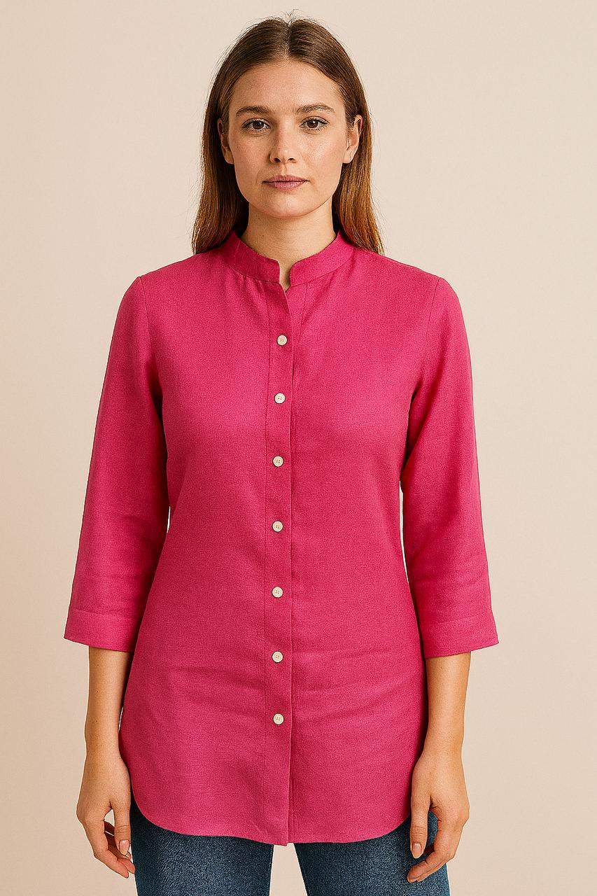 Experience elegance with the Fuchsia Bloom, a women's shirt crafted from pure linen. Its soft, breathable fabric ensures comfort in warm weather, while the vibrant pink hue adds a touch of sophistication to your wardrobe. Designed for a refined fit, this shirt combines timeless style with natural fabric benefits, making it a versatile choice for both casual and semi-formal occasions.